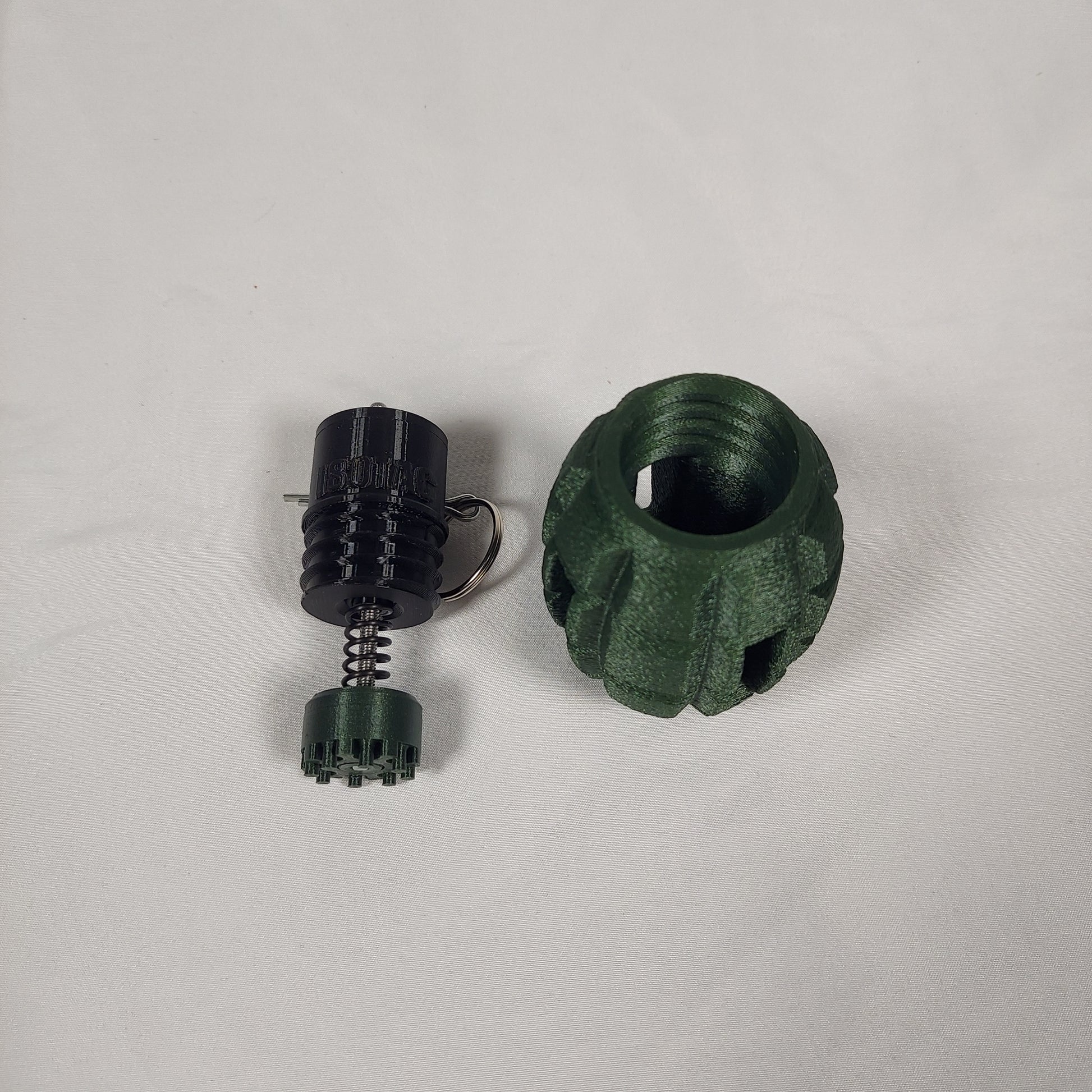Introducing the ThunderStrike V2 (Soviet/Russian F-1 Spoon-less Fuze Variant). It uses 8-shot ring caps to produce a loud bang (Mega Snaps not compatible). This makes it much safer to use than other traditional forms of sound grenades, like pyrotechnic or blank-firing. Detonating upon impact, the system has been re-designed from the original V1 ThunderStrike to be more consistent and durable, as well as being completely reusable. This variant also features our Spoon-less Fuze (pin-only) instead of the standard spoon, giving rapid deployment and less hassle/parts to lose. Weighing only ~90 grams, this grenade is the perfect tool to accompany you on the airsoft or paintball field. It also features our Quick-Change Detonator, which allows you to easily switch out 8-shot ring caps by simply unscrewing the bottom.